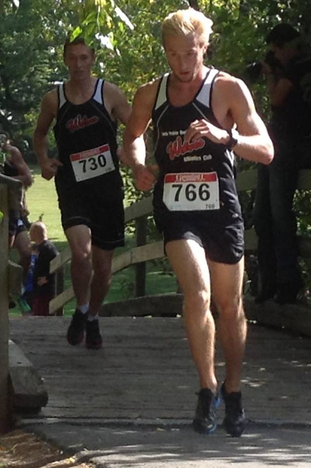 Assistant coach Joren Manz (766) leads Riley Wallace (730) early on in the 2013 SAIT Open. Wallace placed 8th among the college runners, while Manz was 16th amongst the Open runners.