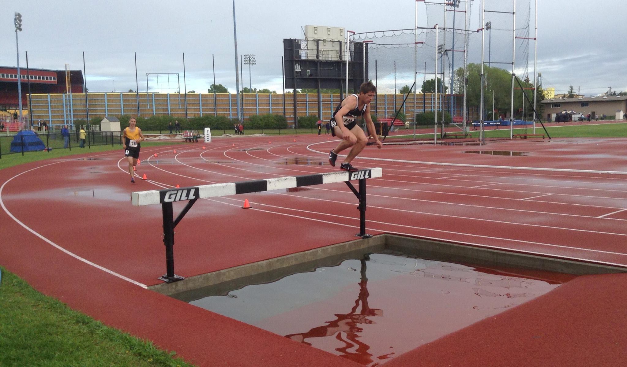 Hayden “Sanchez” Hollowell didn’t let the absence of any steeplechase barriers in the Grande Prairie area spoil his debut in the event in mid June. Proving yet again that “practice is highly over-rated”, the Hythe-based athlete finished 2nd in the 3000m steeplechase at the Canada Summer Games Trials in Calgary. His time of 10:18 ended the year as #2 on the Alberta Junior Men’s list.