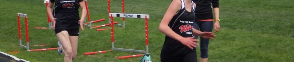 Brittany Duval (leading) and Kailey Bratland (following) will represent the Peace in distance running at the 2014 ASG in Airdrie. (Also pictured, Assistant Coach Jamie Wigmore)