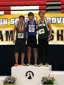 GP Comp’s Brandon Tufford (left) recorded a huge 4 second personal best (1:56.15) in placing third in the Senior Men’s 800m at the 2018 ASAA High School Provincials in Red Deer