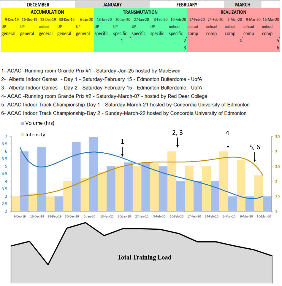 *Note: this is a block type of periodization that is targeting middle distance runners; however based on your feedback this curve will change and adapt to each one of you.